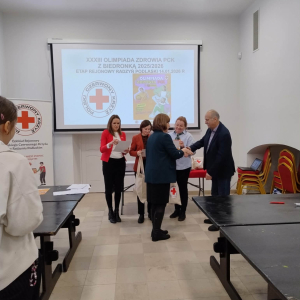 Z radością informujemy, że uczniowie klas VII i VIII naszej szkoły wzięli udział w XXXIII Olimpiadzie Zdrowia PCK z Biedronką. Konkurs sprawdzał wiedzę z zakresu zdrowego stylu życia, pierwszej pomocy oraz działalności PCK.